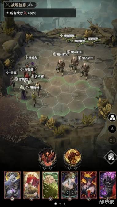这个boss有着一个将人放逐的强力秒杀技,所以摆位是很关键的,大家可以跟下图一样安排阵容进行排位,这关的过关技巧主要是依靠秘宝岩灵卫士,因为boss在施法的时候会重新选择目标,此时可以用岩灵代替被关,留大c在最后补输出。
