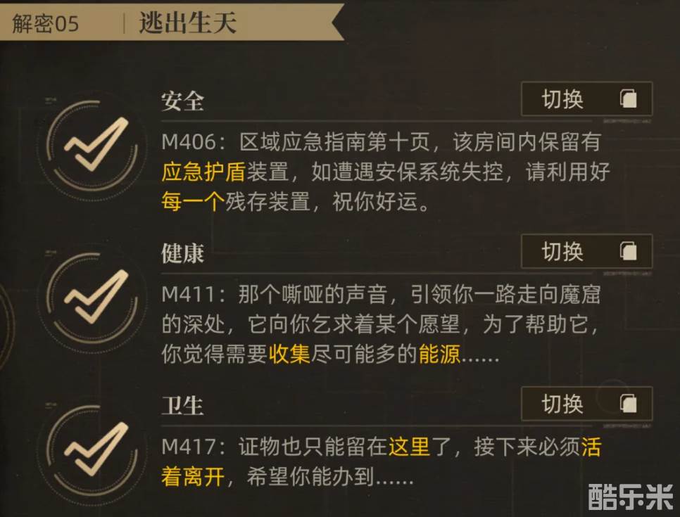 异象回声中第3章解密共有三个关卡,玩家们需要通过完成指定的目标,即可解密成功,由于很多伙伴们不知道怎么过,下面和酷乐米小编一起来看看吧
