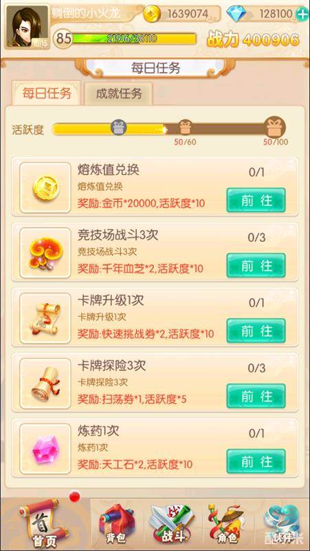 每日任务:每日任务中的任务在每天都会重置,每次完成在有任务奖励的同时,还可以积攒活跃度,活跃度达到一定数量既可以领取活跃奖励,奖励是不是很优厚。