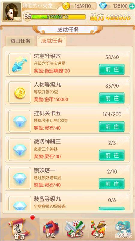 成就任务:成就任务不会重置,是道友在修炼时各个方面的里程碑,道友每取得一个成就都可以领取奖励。