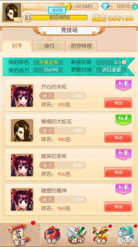 对手:在此我们可以看到道友当前在竞技场中的排行,挑战次数,你的战力和竞技场更新时间。挑战次数是有限制的每天免费次数只有三次,想要更多的次数则需要花费灵石购买。
