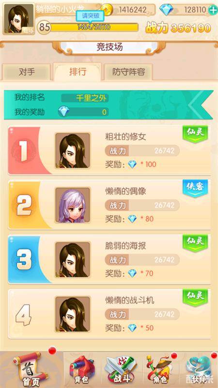 排行:显示你的排名以及可以获得奖励,达到一定排名即可获得奖励,点击排名中的道友的头像即可查看其他道友的伙伴阵容和战力,看有没有可以借鉴的地方,来完善自己的伙伴阵容配合。