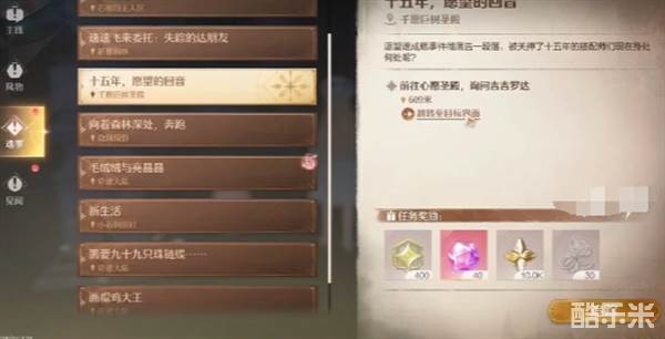 在任务栏逸事里,找到十五年,愿望的回音这个支线