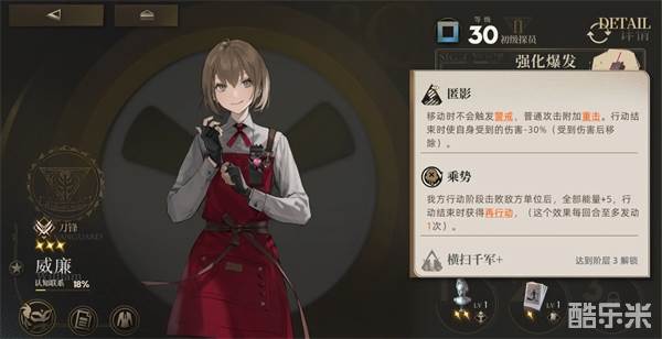 练度要求:威廉在三十级左右即可展现出强力的输出能力,并能帮助玩家顺利击杀前期的杂兵。