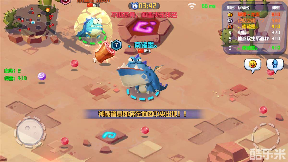 除了硬核的击杀技巧之外,玩家对道具理解和使用也是决定胜败的关键。丛林中随机出现的隐匿行踪、寒冰冻气、治疗闪电等多种类型的道具,玩家需要根据道具的不同作用区分使用。按照作用类型进行划分,可以将其分成攻击型(闪电等)、防守型(龟壳等)、辅助型(隐匿等),以及非常罕见的群体技能。只要手中握有技能,玩家就不需要慌张,可以利用其效果为自己制造出逃跑或者击杀的条件。尤其是群体技能与逆袭火球,甚至能够让你有反杀高等级敌人的机会。