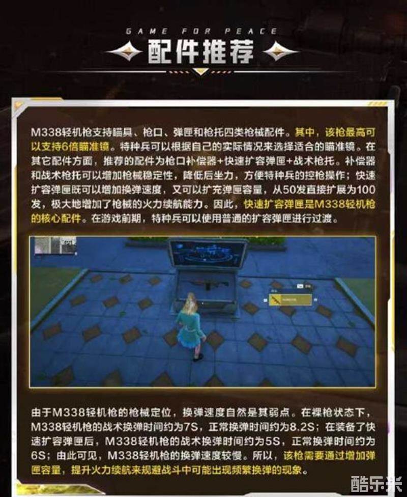 和平精英M338轻机枪即将上线,作为空投武器,那么它搭配什么配件最好呢?下面酷乐米小编带来和平精英M338轻机枪配件推荐,希望可以帮助到您。