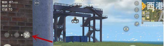 我们在地面的时候,可以看到左侧多出来一个按钮,我们点击右侧这个按钮,即可向右探头,如果有抢的话就可以这样射击,如图所示。