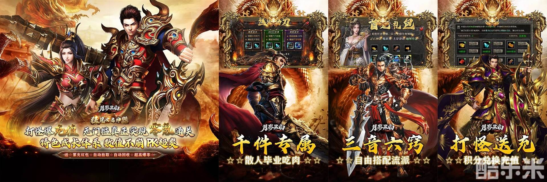 新人上线就送自动回收自动拾取,前期完成战魂任务获得大陆战魂大幅提升打怪效率!本服道具可靠杀怪兑换(包括真充红包),无门槛真正实现零氪通关!特色合成功能道具之前可灵活合成转换!BOSS计时器可随时查看BOSS刷新时间,安心踏实不漏怪!全新成长体系,数值不崩,PK打怪超爽!千件专属统统回收充值货币,散人毕业不是梦!