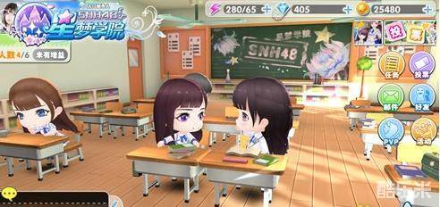 进入游戏后大家会首先看到教室的主场景,你的小偶像正等待着你,Q版形象真的戳中萌点!点击任意小偶像会来到单独的偶像界面,每个偶像都会有专属的语音!好感度越高解锁的语音越多。题外话:爱总(易嘉爱)的声音真是太好听啦!