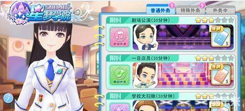 《星梦学院》是以培养SNH48偶像为主题,玩家将以经纪人的身份签约自己喜爱的小偶像,带领其参加公演、外务、为她们打call、和她们AR合照……所以游戏对SNH48的粉丝来说是个惊喜,从配音到人物都最大程度还原了偶像本人,同时还收录了SNH48剧场公演的歌曲等等,足以见策划们是有很用心去做的。