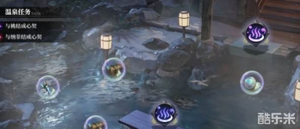 温泉玩法是作为神谕司娱乐室中的一项小游戏存在的,功能“独特”,回报也挺丰厚。玩家通过参与温泉活动,可以获得各类奖励,同时还能与心仪的星痕增进互动。温泉不仅是一个休闲场所,更是能获取一些资源,了解角色剧情。下面和酷乐米小编一起来看看吧