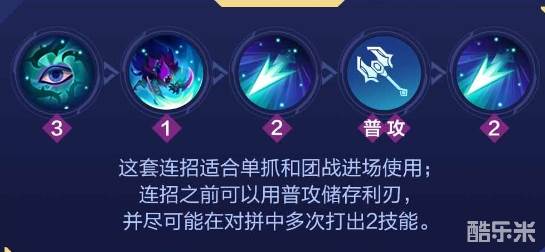 后期没有大招时多控制野怪资源或带线,打团前开启大招分割敌方视野,利用草丛隐藏视野突进敌方脆皮英雄,奠定团战的胜利。
