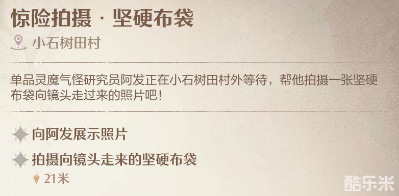 无限暖暖惊险拍摄坚硬布袋怎么拍照?无限暖暖游戏中惊险拍摄坚硬布袋需要我们拍摄向镜头走过来的坚硬布袋,部分玩家不知道任务怎么做,下面酷乐米小编给大家带来的《无限暖暖》惊险拍摄坚硬布袋任务攻略,感兴趣的小伙伴们一起来看看吧。