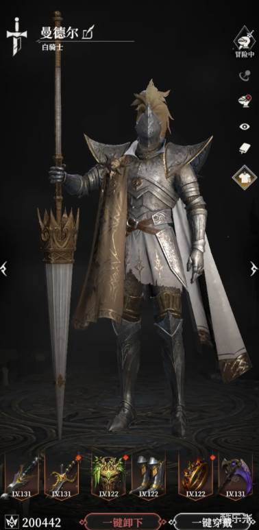 在天赋上推荐大家跟着下图来点,这样能让白骑士在战斗中越打越强,装备上可以根据我们要面对的对手来决定,如果是对群体就选回血套装,如果是面对单体敌人推荐回能套。