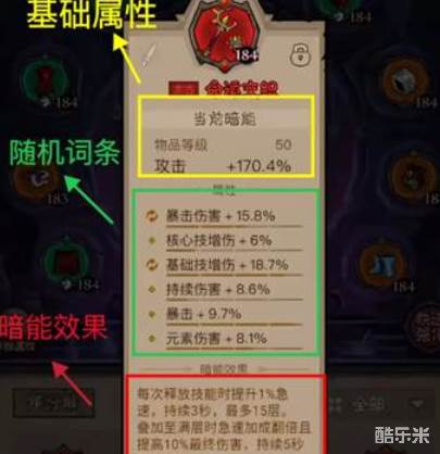 暗能装备洗练分三部分:基础属性、随机词条、暗能效果