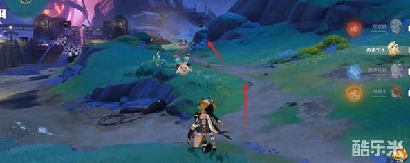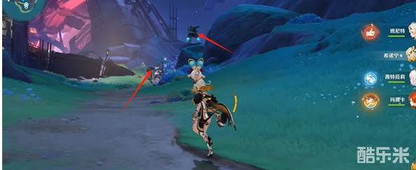 3、走到图中的位置会看到两个怪物,建议先把左侧的愚人众给清了。