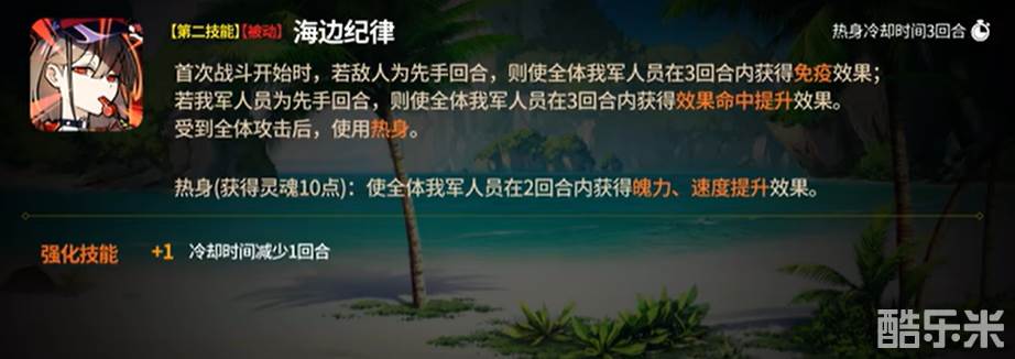 亚澜的核心在于她的被动“海边纪律”。如果敌人抢先行动,我方全体会立即获得三回合的免疫效果,确保团队在开局阶段稳住阵脚。若己方取得先手,则会为全体队友提供三回合效果命中提升,为控制技能的命中率创造更高保障。这种双向触发的机制,让队伍无论快慢都能获得可靠的保护或增益。