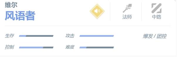 维尔在战斗过程中击败敌方英雄或助攻时,会获得一层“风语”效果,每一层“风语”增加自身8点移动速度最高可叠加10层,当维尔的等级达到4级、6级、8级时,会获得一次强化技能的机会,每个技能可强化一次,强化后的技能效果根据玩家的选择决定。