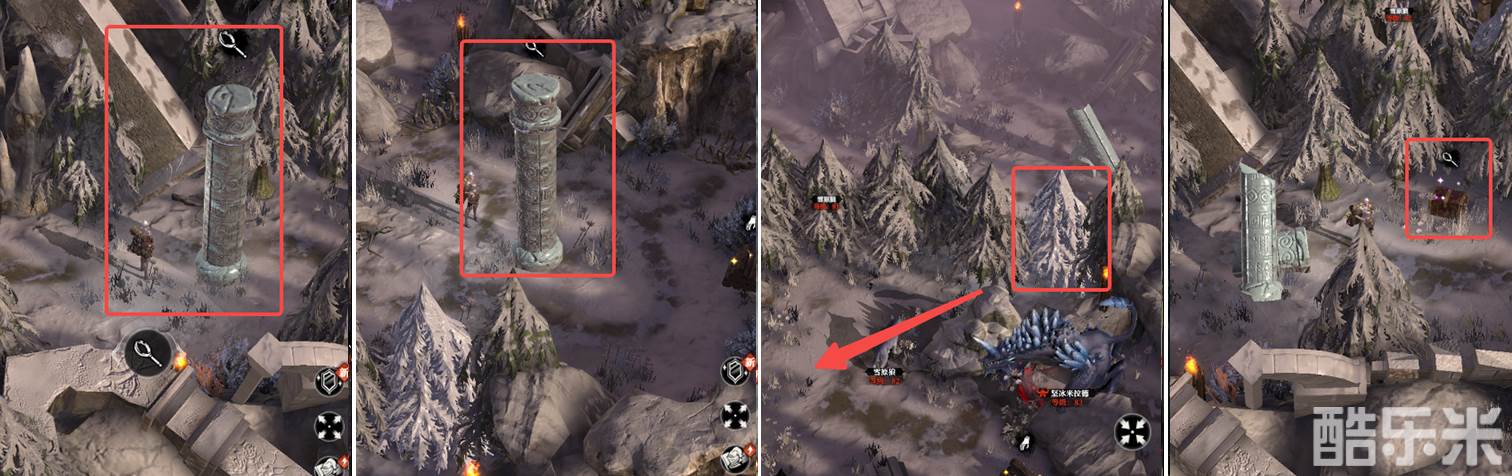 “先民的祭祀地”中还隐藏一个重要事件。入口右侧的宝箱必须激活三根图腾柱才可开启。破坏第一根需力量≥300,接着右侧第二根柱需力量≥1160,最后左下图腾柱则要求力量≥1220。当三根柱子被破坏后,返回入口就能开启该宝箱,获得遗迹石板3号。