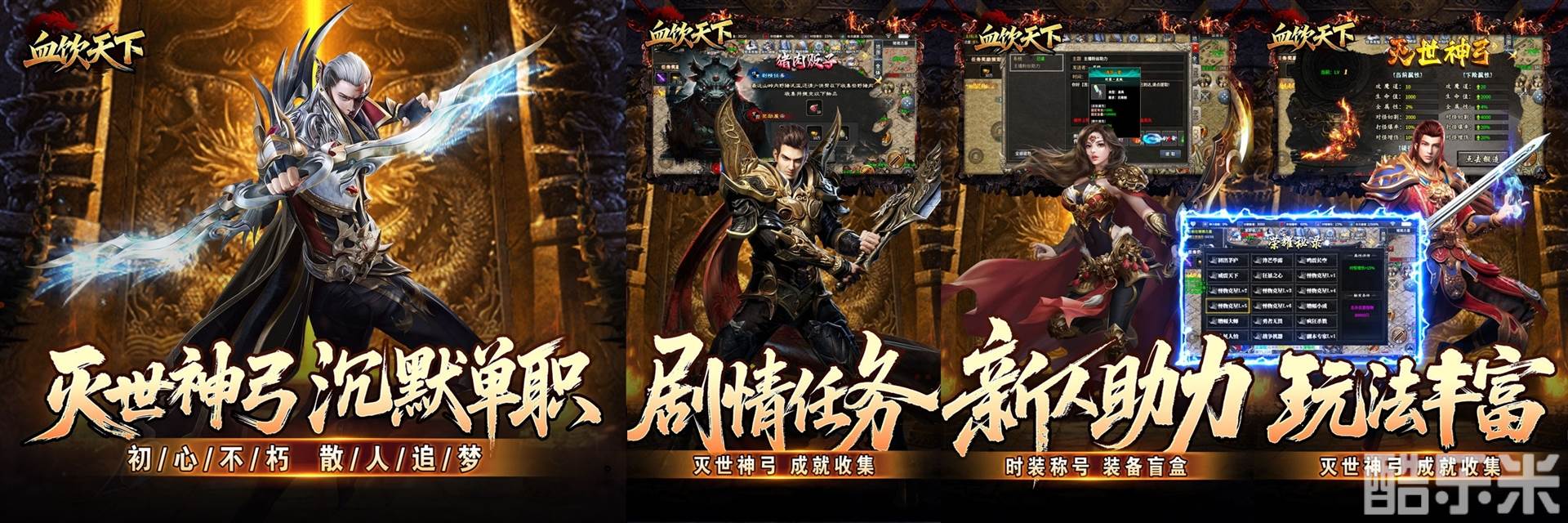 《血饮天下(灭世神弓沉默单职)》全新1.85沉默单职业版本震撼来袭。开荒大礼包无门槛免费送:自动回收、自动拾取,时装皮肤、爆率称号、增伤魂环、材料宝箱、装备盲盒等;多样的角色养成系统:灭世神弓、麒麟护臂、无极剑道、宝物图鉴、荣耀秘录等;还有丰富剧情任务、大量专属装备、彩蛋奇遇,让你体验独一无二的“沉默”之路!