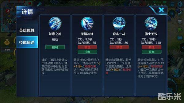 第四次普攻能挑飞目标,可以用来打断敌人一些技能,在关键时刻也可以用来留人,同时也可以搭配其他技能打出持续性的控制。攻速的提升能让韩信更快速的清野,也能更快的触发普攻的挑飞效果。