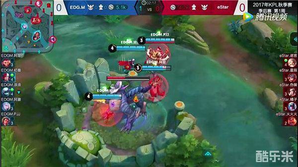 eStar(红色方)阵容:老夫子+李元芳+不知火舞+露娜+苏烈