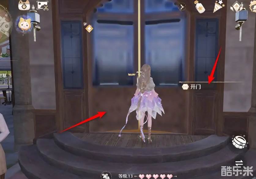 1、来到位于花愿镇的飞鸟餐厅门口,点击“开门”进入飞鸟餐厅内部。