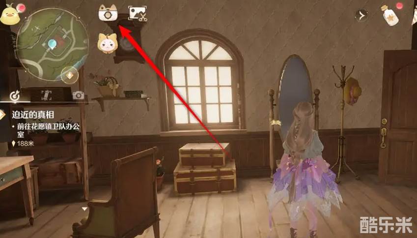 1、进入游戏,来到位于花愿镇的诺诺伊家二楼。