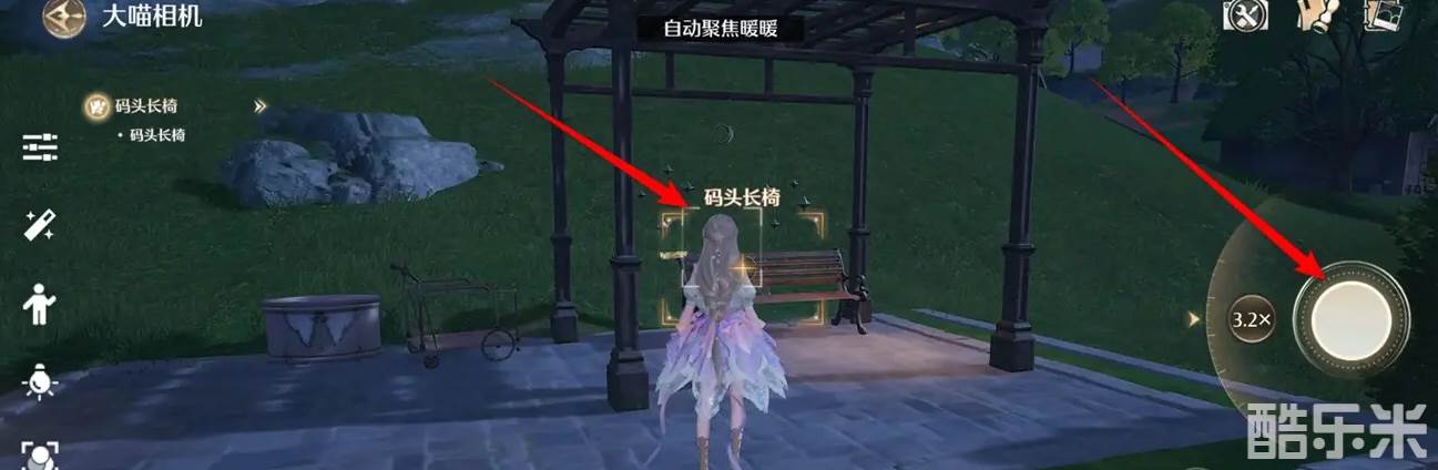 2、用相机对准识别出“码头长椅”,再点按快门拍照。