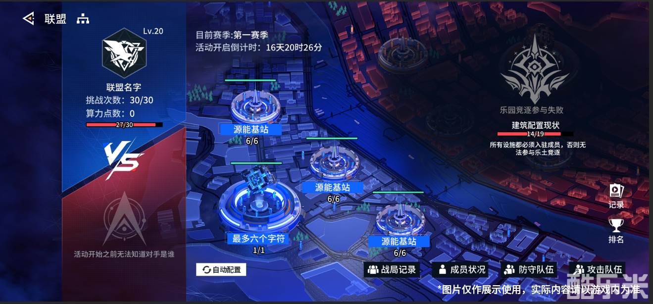 1)在活动开始前设置好19个设施的防守成员,即会报名参加成功活动,进入活动的对手匹配阶段。