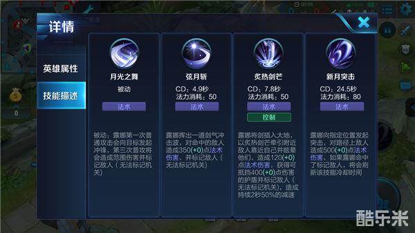 露娜是非常考验操作的英雄,月下无限连等连招在具备高伤害的同时,还给予她超高的机动性,满场的月光常常令敌人十分头疼,只要熟练露娜,就可以轻轻松松秀起来,一打五也不在话下。