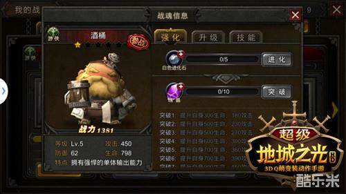 虽然试玩的时间不是很长,但游戏给小编的感觉还是很不错的,尤其是游戏里独创战魂玩法。《超级地城之光》里共设有4大职业,小编选的是战士。新手引导中,第一个与大家见面的战魂是——酒桶战魂。该战魂的输出相当可观, 弥补了像战士这样的近战角色输出不足的缺陷,还是一个在群伤及暴击中超越主角的存在,算是新手玩家的福音。