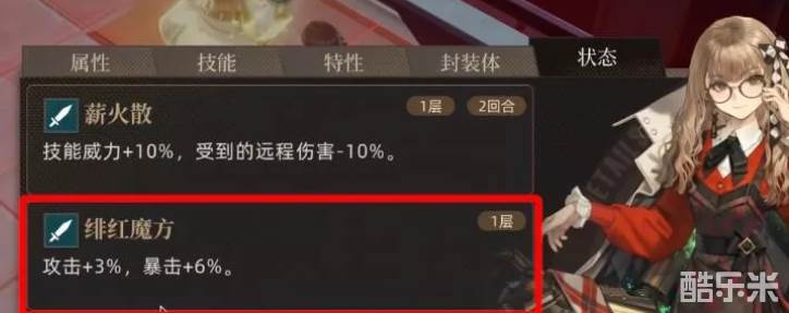 天生特性初等降临共有三个效果,效果一是让其在攻击处于暴露状态的敌人时,可获得10%抗性穿透效果。该角色在周围八格范围内追击,且自带一次追击次数,而效果三每回合仅一次,在她释放技能后追击次数加一。因此库珀只要每回合释放技能,就可以打出两次追击,即使是满状态情况下受到增益加成时也能够叠加层数,尤其是在BOSS战时输出极高。