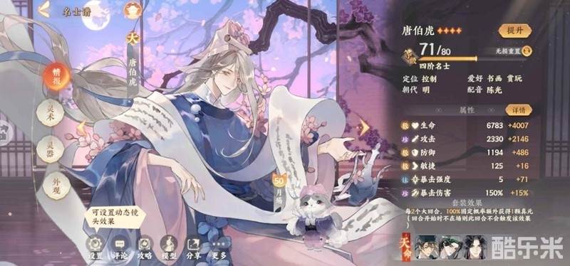 忘川风华录每一位名士的主要属性都不相同,玩家根据关卡的特点,以及名士主要属性的匹配度,进行出战阵容、名士灵气相关的搭配。那么唐伯虎怎么培养?下面和酷乐米小编一起来看看吧