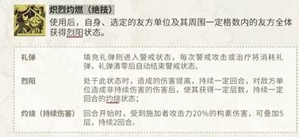 向日葵的绝技“炽烈灼燃”让她的输出更加凶猛。在使用这个技能时,自己和周围的队友将进入“烈阳”状态,提升伤害输出。而且每当你攻击敌人并造成非持续性伤害时,敌人会被灼烧,灼烧效果能叠加,最多可堆叠五层,每一层灼烧都会带来20%攻击力的构素伤害。这个技能使得向日葵不仅能够提供强大的持续输出,还能带来有效的敌人减益效果,让敌人身处高压之下。