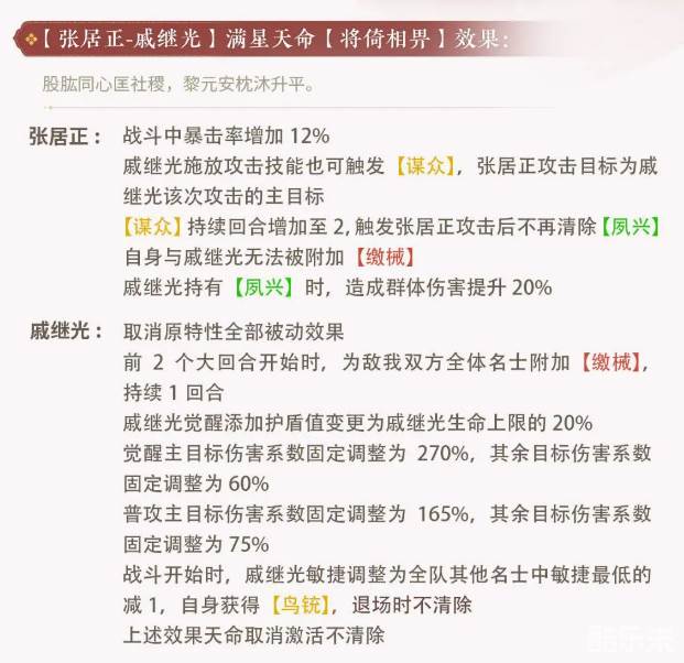 他的被动技能机制则更为核心和复杂。战斗开始或任何单位的回合开始时,若己方未持有【谋众】或【断独】,张居正便会为全体施加【断独】。这是一个带有负面效果的预备状态,降低攻击20%,但当角色在回合内首次使用攻击或非攻击技能时,【断独】就会转化为对应的正面状态——【夙兴】或【夜寐】。