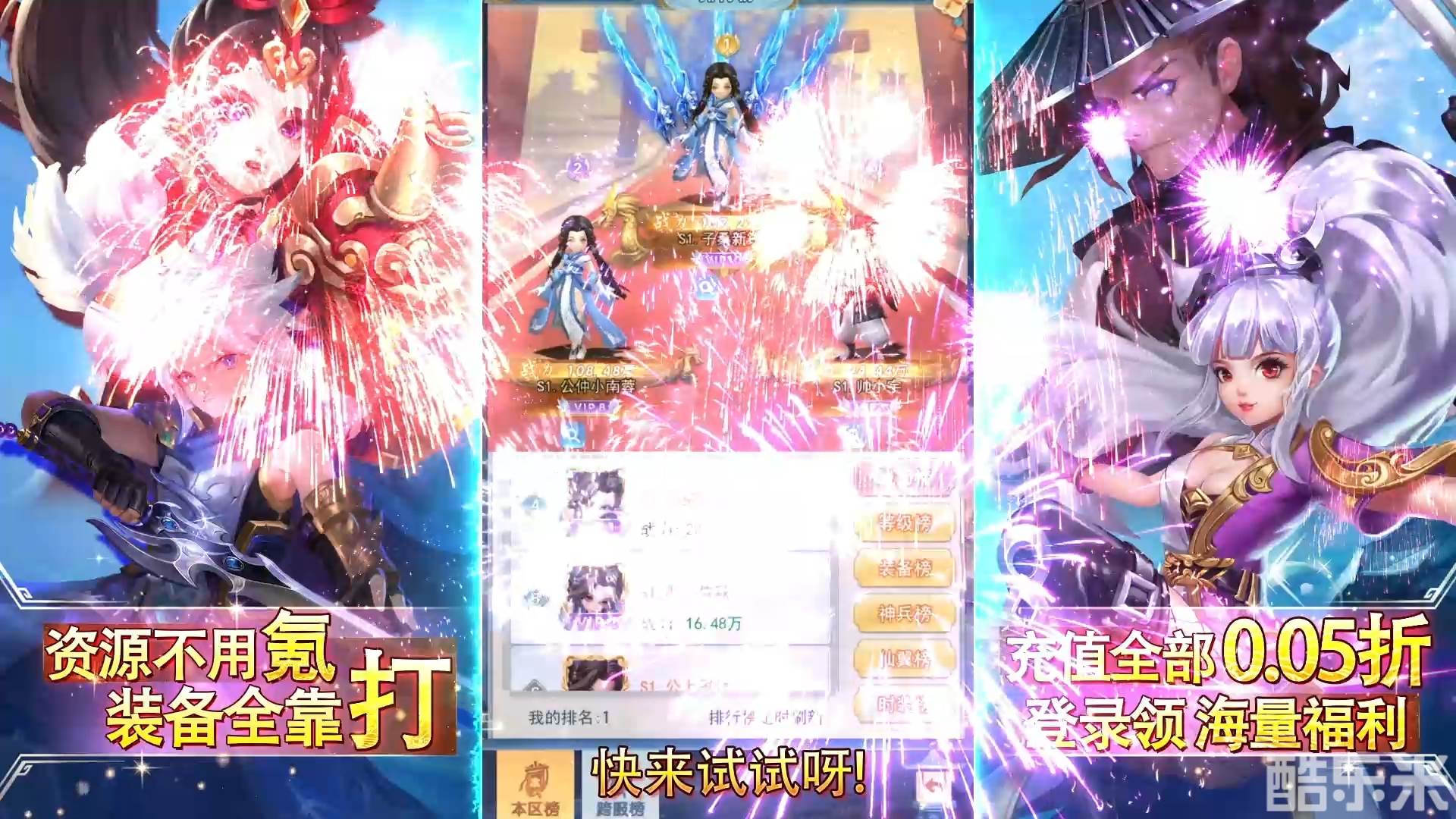 ★资源不用氪,装备全靠打。游戏充值全部0.05折