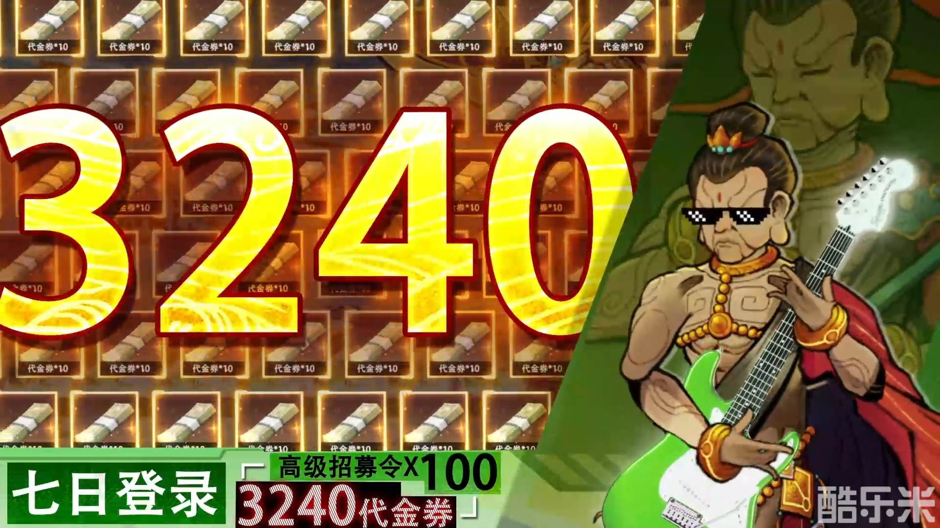 【七日登入】送3240代金券、高级招募令*100、核心神将自选*1