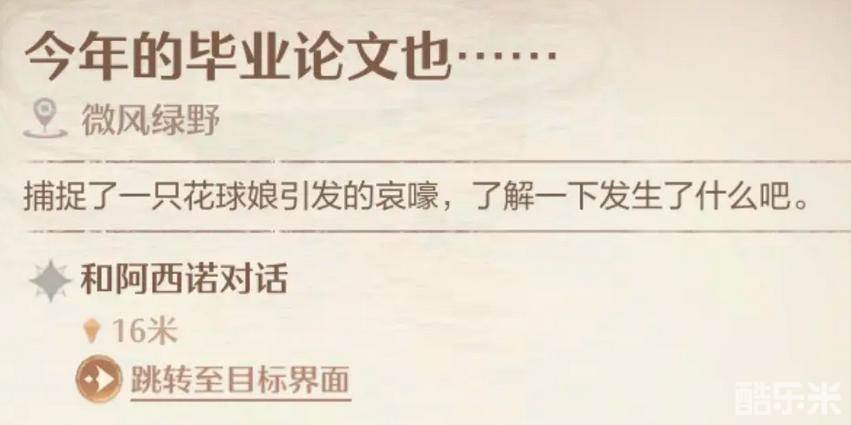 2、这里有一个NPC阿西诺,他前面一点有一个花球,换上捕虫装,然后长按捕虫悄悄过去把绣球娘抓了,花球收了,就会触发任务