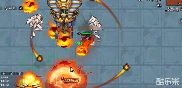 由于没有宠物的辅助,玩家在进入到第二阶段时就需要重复上面的操作。这里就有一个技巧,法老在遁地时就会召唤木乃伊,玩家可以利用来自于法老的攻击,直接就将木乃伊全部的炸飞。玩家一旦在掌握技巧之后就可以迅速的破盾。