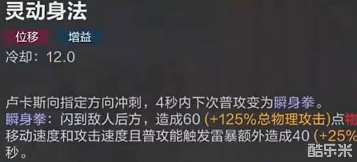 卢卡斯的2技能“灵动身法”则赋予他更高的机动性,让他能够迅速穿越敌阵,打出瞬间爆发。这个技能不仅可以让卢卡斯向指定方向冲刺,还能在短短4秒内提升他的移速和攻速,并且他的下次普攻会变为瞬身拳,直接闪现到敌人后方,打出物理伤害。这项技能的妙处在于可以让卢卡斯在敌人最不经意的时候,迅速接近并击杀敌人。