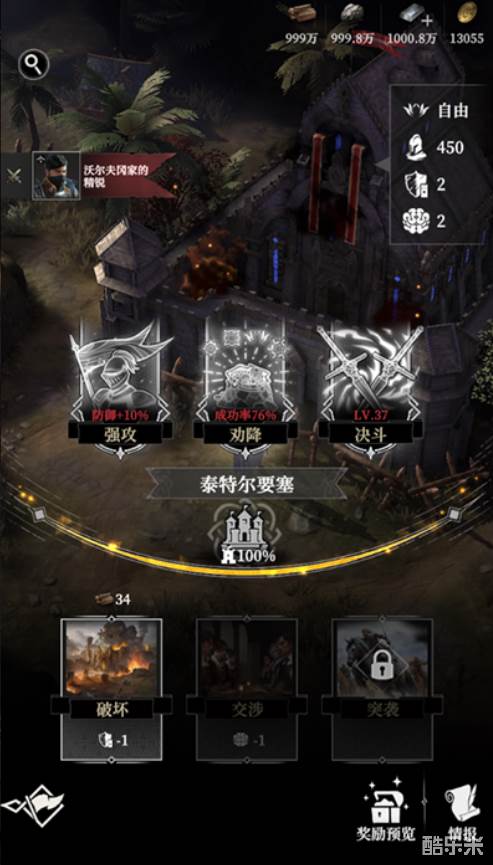 玩家如果在双堡海湾中想要快速的获得资源,先要来到地图上方开启上方攻城战,这时候玩家无法通过决斗来解决的话,就需要消耗对应的金币才能够开启交涉。其实玩家在上方攻城战当中,如果连续三次突袭,一旦串响成功的话,才能够成功的推进下面的剧情,毕竟劝降的时候成功率只有80%,所以说玩家还有20%的情况将会面临失败,另外在下方攻城战当中,这时候需要玩家完成上方攻城战才能够顺利的解锁,此时玩家需要进行三次破坏,还将会面临一次突袭。另外在这里所涉及到的劝降成功率只有76%。