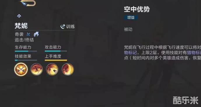 妮是游戏中一名非常灵活的奇袭英雄,它可以借助障碍物实现多段飞行,这是自身最独特的地方,也是使用过程中的难度所在。下面和酷乐米小编一起来看看吧