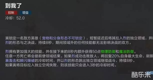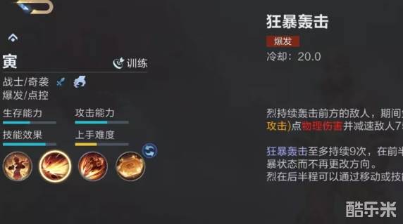 寅这是一个近战型的英雄,但是它具有独特双形态,可以理解为拥有控制和爆发这双形态的战士。下面和酷乐米小编一起来看看吧