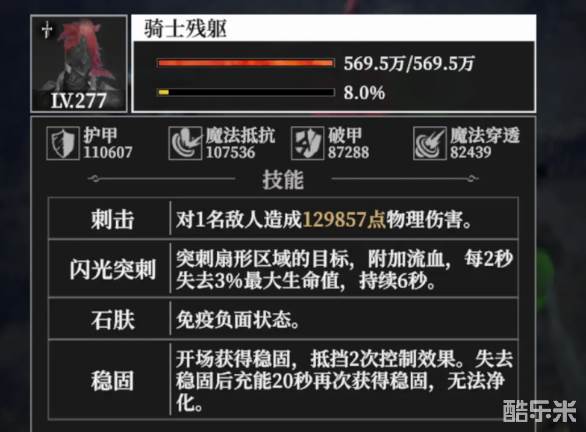 Boss战斗就是关卡的核心难点,代表性的boss有骑士残躯,还有邪念骑士,全部都会拥有独特的机制,骑士残躯具有免疫负面状态的效果,开场就会拥有一个稳固的作用,可以抵挡控制。散光突刺还可以直接造成扇形伤害,并且还可以附加一个流血的效果。邪念骑士生命值降低时就可以直接触发护盾,攻击阵亡目标之后,就可以迅速的提升攻击的速度,而且还可以移除敌方的增益效果。邪龙会拥有复仇尖刺眩晕,还有低血量强化等技能,在受到射手伤害之后就会反增伤害来源输出。