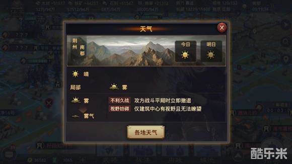 《率土之滨》中天气同步现实天气,且对游戏战斗产生影响