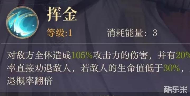 鲁肃的核心技能【挥金】能够对敌人造成伤害,并且有较高的劝退概率,这使得他在面对多个敌人时能够有效地减少敌方的战斗力。鲁肃可以与其他角色搭配形成强大的阵容。例如,他可以与陈登搭配,利用陈登的辅助能力提前释放大招尝试撤退第五章的头领BOSS。此外,鲁肃还可以与郭解、颜良、阿婵、史子眇和杨修等角色组成队伍,其中必不可少的一个密探角色颜良可以提供护盾保护鲁肃,而阿婵和史子眇则可以为团队提供输出和治疗支持。