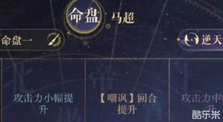 可以看得出马超的命盘有往增伤方面走,也有向生存方面走的,考虑到马超本身的定位,他的伤害系数是够的,本身输出不低了。更多是采用“西凉坚壁”+“出手法”的组合,这两个命盘要有。铁骑当千有负面效果不建议,以攻为守按个人需求。