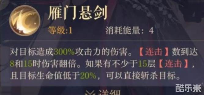 张辽普攻叠加“连击”层数,技能则是单攻,并且在连击层数达到8层和15层的时候翻倍,大于等于15层时释放该技能会清除所有的层数,但如果目标生命低于20%直接完成斩杀则保留层数。下面和酷乐米小编一起来看看吧