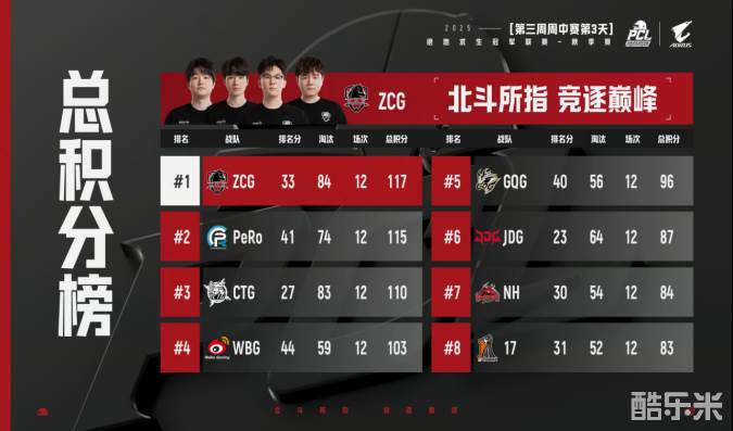 北斗所指,竞逐巅峰。绝地求生冠军联赛24支顶级战队分为A、B、C三组,经过常规赛、周中赛、周决赛的多轮对抗,正式角逐出了季后赛的名额。CTG战队后发制人,成功拿下常规赛第三阶段周冠军,17战队和4AM分别位居第2和第3。晋级PCL2025秋季赛总决赛的队伍分别是:CTG 、JDG 、17、TYLOO、4AM 、ZCG 、JRG 、PeRo 、GSW 、EDG 、GQG 、WBG 、NH、LEG、SMS 、TM,共16支战队。